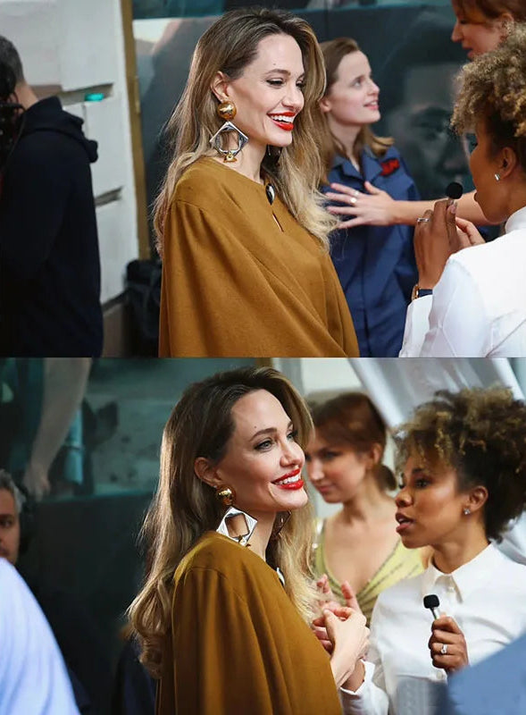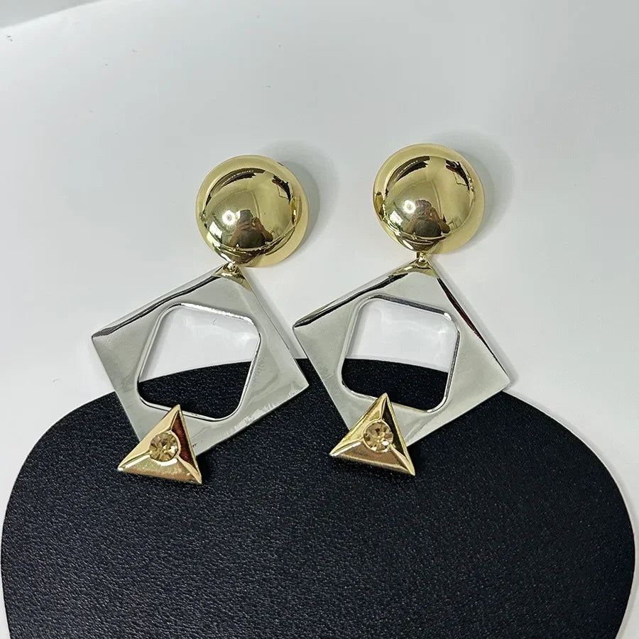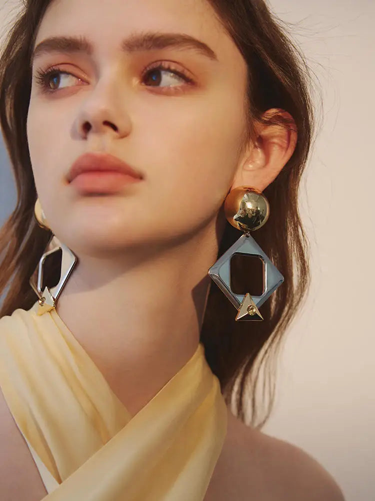 Brincos Geométricos irregulares. Como todo geométrico imprime leveza e dá um ar futurista às produções, e "Up" no visual mais básico.